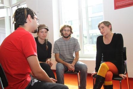 Bild: Andrea-Maja Burri (rechts im Bild) im Gespräch mit Studierenden